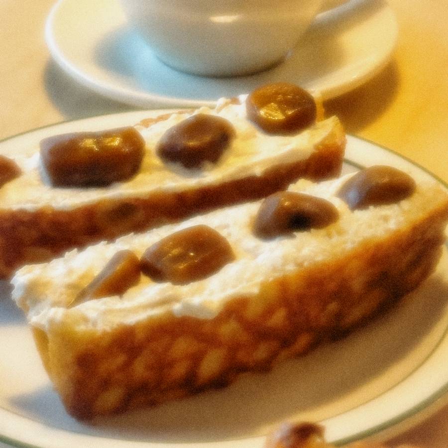 2). ๋ฐคํฌ๋ฆผ: ํํํฌ๋ฆผ 250g, ๋ฐค์ผ 100g, ์คํ 20g
