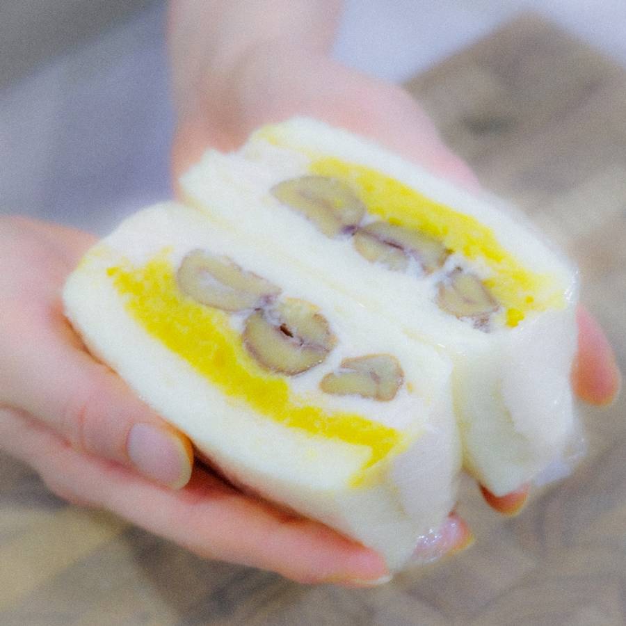 โ ํํํ๊ธฐ: ์ฐจ๊ฐ์ด ์ํฌ๋ฆผ+์คํ โ ์ฃผ๊ฑฑ ๋์ด ์ด์ง ๊บพ์ผ ์ ๋๋ก ๋ง๋ค์ด์. โก ์๊ธฐ: โ ์ ๋ฐค์ผ์ ์ด์ด ์์ด ๋ฐคํฌ๋ฆผ์ ์์ฑํด์. โข ๋ฌด์ค ๋ง๋ค๊ธฐ: ์ตํ ๊ณ ๊ตฌ๋ง ์ผ๊นจ๊ณ ๊ฟ๊ณผ ํํํฌ๋ฆผ์ ๋ฃ์ด ๋งค๋ํ๊ฒ ๋ง๋ค์ด์. โฃ ์๋ฉ: ์๋นต ํ์ชฝ์ ๋ฐคํฌ๋ฆผ์, ๋ฐ๋์ชฝ์ ๊ณ ๊ตฌ๋ง๋ฌด์ค๋ฅผ ๋ฌ๋ฟ๋ฃ๊ณ , ๊ฐ์ด๋ฐ ๋ง๋ฐค์ ์ผ๋ ฌ๋ก ์ฌ๋ ค ํฉ์ณ์. โค ํฌ์ฅยท์ปทํ